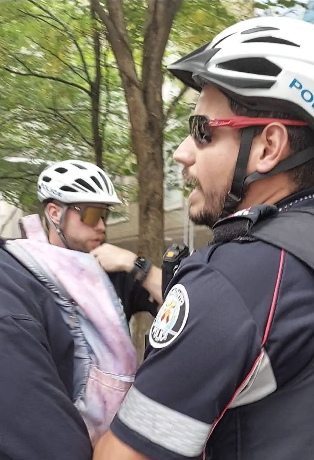 At the demonstration, some officers present from 51 Division had obscured or removed their names and badge numbers, information that is typically visible to the public as part of their uniforms. A legal observer making the rounds asked an officer for his badge number. This is a routine question that police are legally required to answer under section 13(2) of the Code of Conduct for Police Officers, O Reg 407/23. In response to the question, the officer threatened them with arrest.